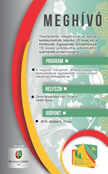 A kertészek a 2016-os évben kettős évfordulót ünnepelnek Zentán, hiszen a városban húsz éve indult a kertészmérnökképzés, illetve tizenöt éve jött létre a Kertészek Egyesülete.