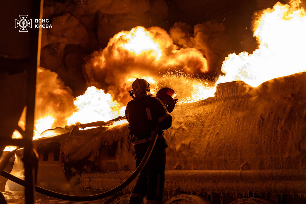 Oroszország újabb heves támadásokat intézett Ukrajna legnagyobb városai ellen. "Kijev masszív ellenséges ágyúzás alatt áll. Ne hagyják el óvóhelyeiket!" - figyelmeztette a kijevi lakosokat Vitalij Klicsko polgármester a Telegramon. (Ukraine’s State Emergency Service / Telegram)