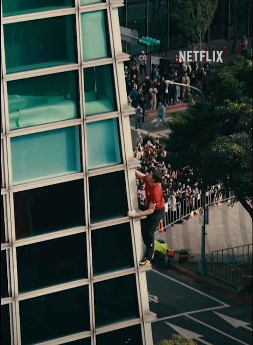 Az extrém mászásairól világhírűvé vált amerikai hegymászó, Alex Honnold vasárnap teljesítette újabb látványos kihívását: biztosítókötél nélkül mászta meg a 508 méter magas Taipei 101 felhőkarcolót Tajvanban. A hajmeresztő produkciót a Netfilx élőben közvetítette. (Képernyőfelvétel / Netflix)