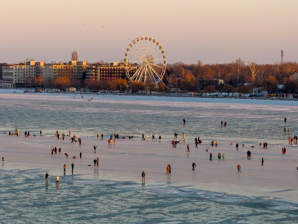 Valószínűleg sokáig emlegetik majd ezt a telet azok, akik az elmúlt napokban korcsolyázhattak, csúszkálhattak a befagyott Balatonon. A jeges napoknak egyelőre vége, a Vízimentők Magyarországi Szakszolgálatának vezetője szerint a Balaton jelenleg csak arra alkalmas, hogy gyönyörködjünk benne. (Facebook / Visit Hungary)