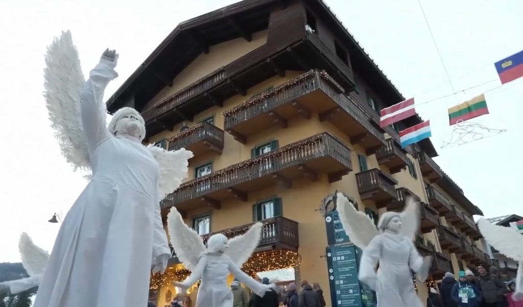 A farsang Cortina d’Ampezzóban a Silence Teatro utcai előadásával zárult. Az olimpiai láng közelében tartották performanszukat, természetesen turisták gyűrűjében. A farsangi mulatságok és a karneválok húshagyókedden véget értek, mint ahogyan lassan végéhez közeledik az idei téli olimpia is. (Képernyőfelvétel / Euronews)