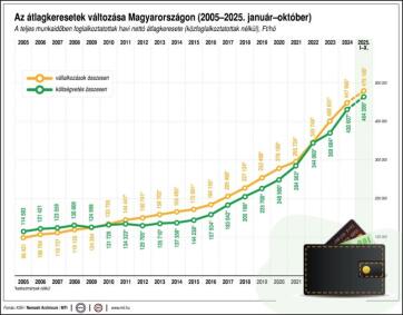 A nettó átlagkereset emelkedése a 2025. július 1-jétől bevezetett magasabb összegű családi kedvezmény és a 2025. október 1-jétől bevezetett három gyermeket nevelő anyák kedvezménye miatt haladta meg a bruttó átlagkereset növekedését - jegyezte meg a KSH