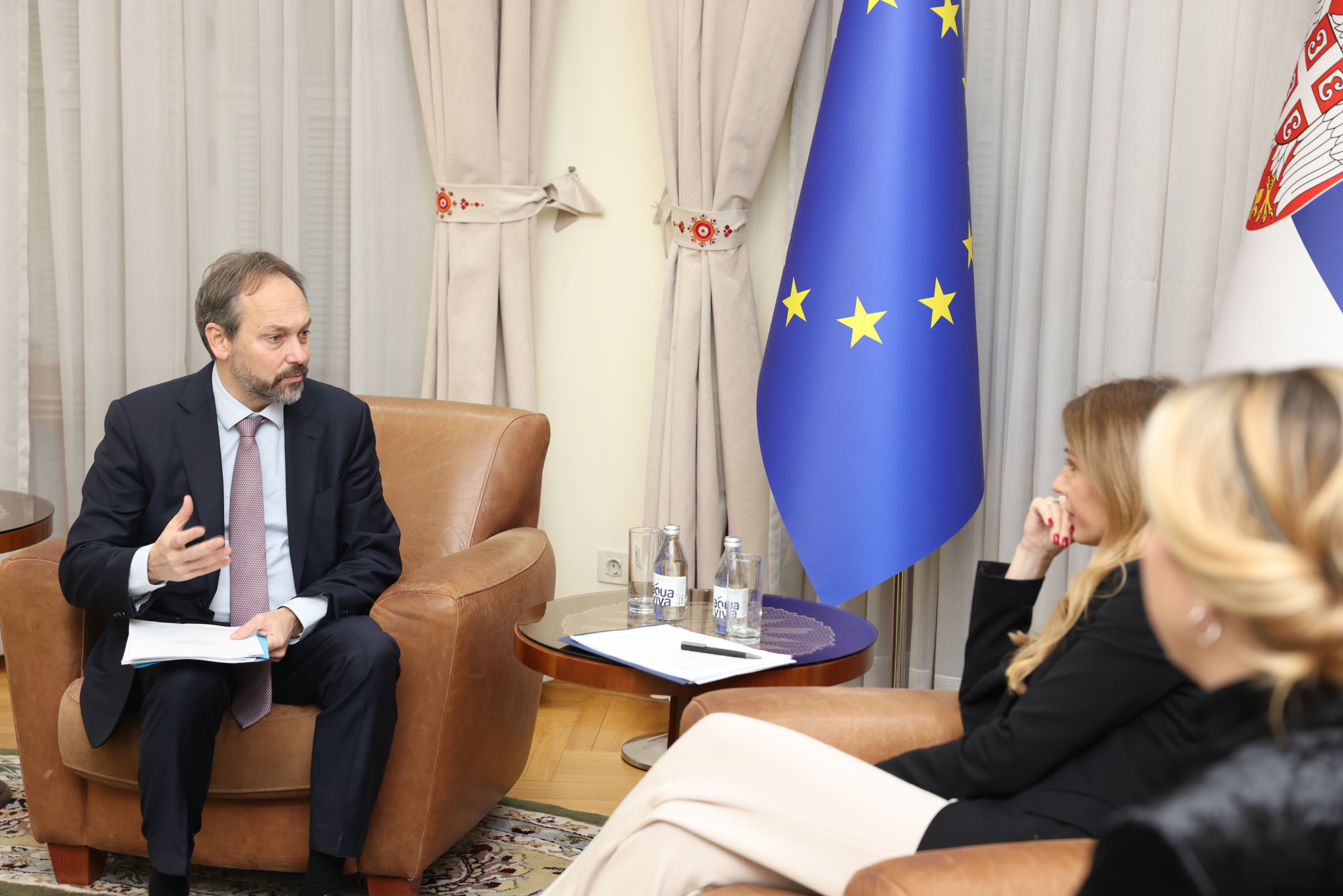 Dubravka Đedović Handanović bányászati és energetikai miniszter ma megbeszélést folytatott Emanuele Giaufret-val, az EU szerbiai nagykövetével az energetikai szektor reformprogramjáról és az abban meghatározott intézkedésekről, valamint a ritka ásványi nyersanyagok és elektromos járművek értékláncáról szóló együttműködési megállapodás végrehajtásáról, amelyet Szerbia és az Európai Unió között kötöttek.
