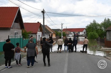 A Hargita megyei községben vasárnap este a helyiek és az őket segítő önkéntesek 12 ezer homokzsákból építettek védőgátat egy esetleges árhullám megfékezésére. A gát a régi bányarész, a Dózsa-bánya tetejének hirtelen beomlása esetén keletkező árhullámtól védené a környékbeli házakat.