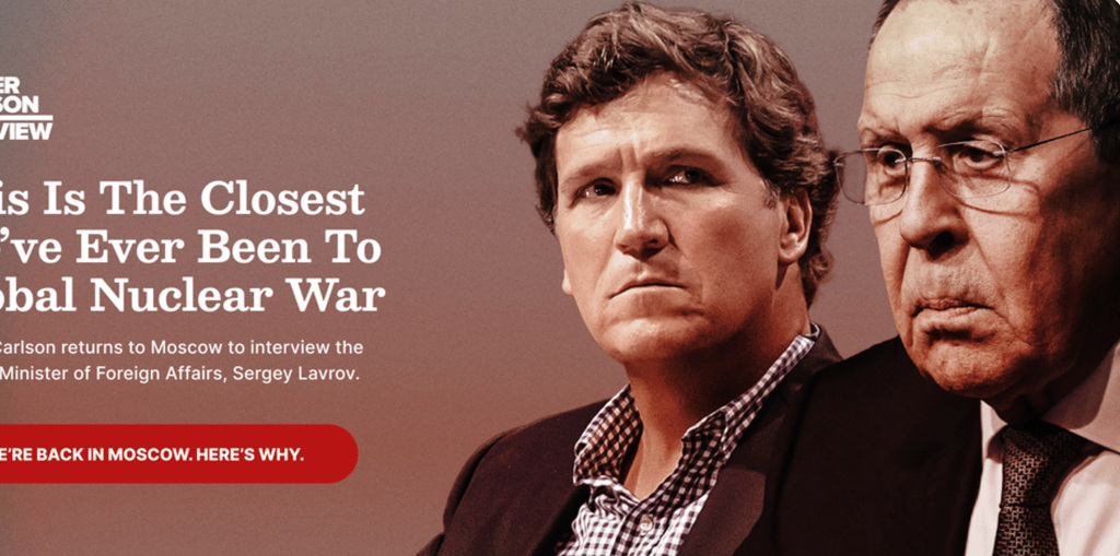 Tucker Carlson ismét Moszkvába látogatott, hogy interjút készítsen, ezúttal Szergej Lavrov orosz külügyminiszterrel. Az amerikai műsorvezető szerint a beszélgetés a háború lezárásának lehetőségeiről és Donald Trump elnökségének lehetséges hatásairól szólt. Carlson februárban már interjút készített Vlagyimir Putyin elnökkel, ahol az orosz–ukrán béketárgyalások kerültek szóba.