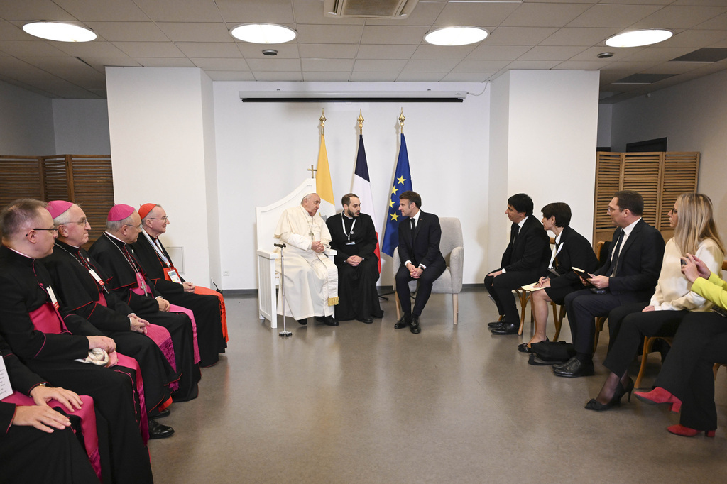 Az Austerlitz téri parkban – ahol a szájhagyomány szerint Napóleon császár játszott gyermekként –, több ezer hívő előtt pontifikált szabadtéri mise után a pápa elutazása előtt, a repülőtéren Emmanuel Macron francia elnökkel találkozott, akivel leginkább nemzetközi ügyekről beszéltek, és a vitatottabb témákat – mint például az abortusz jogának francia alkotmányba foglalását – kerülték, írja az Euronews.