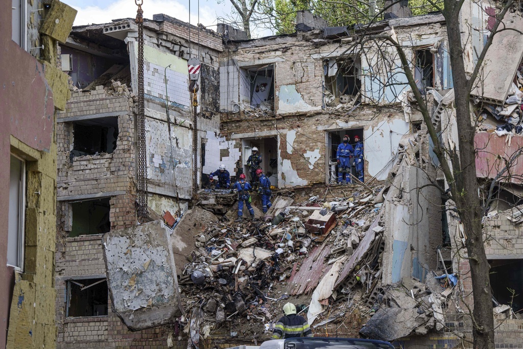Ihor Klimenko belügyminiszter hivatalos Telegram-csatornáján jelentette be, hogy a katasztrófavédők 10 sérültet mentettek ki a romok alól, mindannyiuknak orvosi és pszichológiai segítséget nyújtanak. A jelentés szerint még mindig vannak emberek a romok alatt.