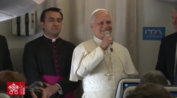 XIV. Leó pápa tíz napos afrikai útját befejezve, az Egyenlítői-Guinea fővárosából, Malabóból Rómába tartó repülőúton, az őt kísérő hetven újságíró öt kérdésére válaszolt.