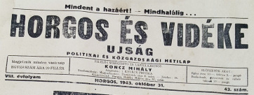 - A Horgos és Vidéke lapot Budapestről, az Országos Széchényi Könyvtárból sikerült megszereznie Bús Csaba igazgató úrnak. Az 1942-44-es évfolyamokat kaptuk csak meg, sajnos ugyanis csak ennyi maradt fenn a hetilapból. Vasárnaponként jelent meg az újság. Politikai és közéleti témák is szerepeltek benne. A fennmaradt példányok a háború alatt jelentek meg, így az első oldalakon a háborús tudósítások jelentek meg. Természetesen a horgosi aktualitások is helyet kaptak a lapban, az utolsó oldalon pedig érdekes az apróhirdetéseket böngészni, mert azokból is sok minden kiderül az adott korról. Nemcsak Horgoson olvasták azonban a lapot, hanem a környező településeken is, ez kiderül a megjelent apróhirdetésekből. Érdekesség, hogy a szerkesztőség nem Horgoson volt, hanem Magyarkanizsán, csupán a kiadóhivatal volt a faluban. Egyébként Koncz Mihály adta ki az újságot.