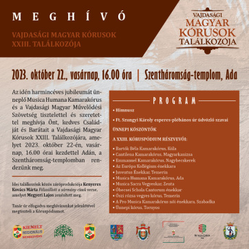 A Vajdasági Magyar Ünnepi Játékok keretében az idei évben is megszervezik a Vajdasági Magyar Kórusok Találkozóját, melyre október 22-én, vasárnap 16 órától került sor az adai Szentháromság-plébániatemplomban.