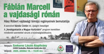 Fábián Marcell a vajdasági rónán címmel kerül megrendezésre Hász Róbert vajdasági témájú regényeinek bemutatója október 16-án, csütörtökön 19 órakor a szabadkai Szekeres László Alapítványban. Az eseményen a doroszlói származású, József Attila-díjas író, a szegedi nagy múltú Tiszatáj folyóirat főszerkesztője lesz a vendég egy izgalmas beszélgetés erejéig. Hász Róbert legelső kötete Újvidéken jelent meg A szalmakutyák szigete címen. Azóta magyar nyelven és fordításban még 22 kötete hagyta el a nyomdát.