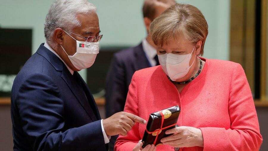 A portugál miniszterelnök szintén ajándékkal kedveskedett a német kancellárnak. Német diplomáciai források szerint António Costa díszes parafa dobozban José Saramago Nobel-díjas portugál író 1995-ben megjelent, Vakság című regényét ajándékozta Merkelnek. Costa emellett személyre szabott arcmaszkokat adott át minden tagállami vezetőnek szintén portugál parafa dobozokban.