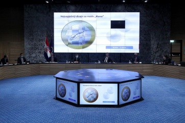A Horvát Nemzeti Bank (HNB) a múlt pénteken mutatta be a horvát euróérmék dizájnterveit, amelyekből a horvát pénzverde egymillió próbaérmét készít majd. Az érmék egyik oldalát a piros-fehér kockás horvát címer, a sahovnica díszíti, míg a másik oldalát különböző szimbólumok, így a 2 eurós pénzérmén Horvátország térképe, az 1 eurós érmén pedig a jelenleg is használatban lévő kuna szerepel. Nikola Tesla az 50, 20 és 10 centes érmékre, míg az öt-, a két- és az egycentes érmékre az ősi szláv glagolita írás került.
