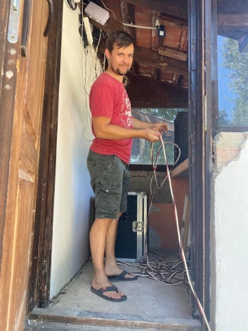 Az OZ önkéntesei serényen készítik elő a terepet, pakolják a berendezést, köztük Bellér Benedek is.