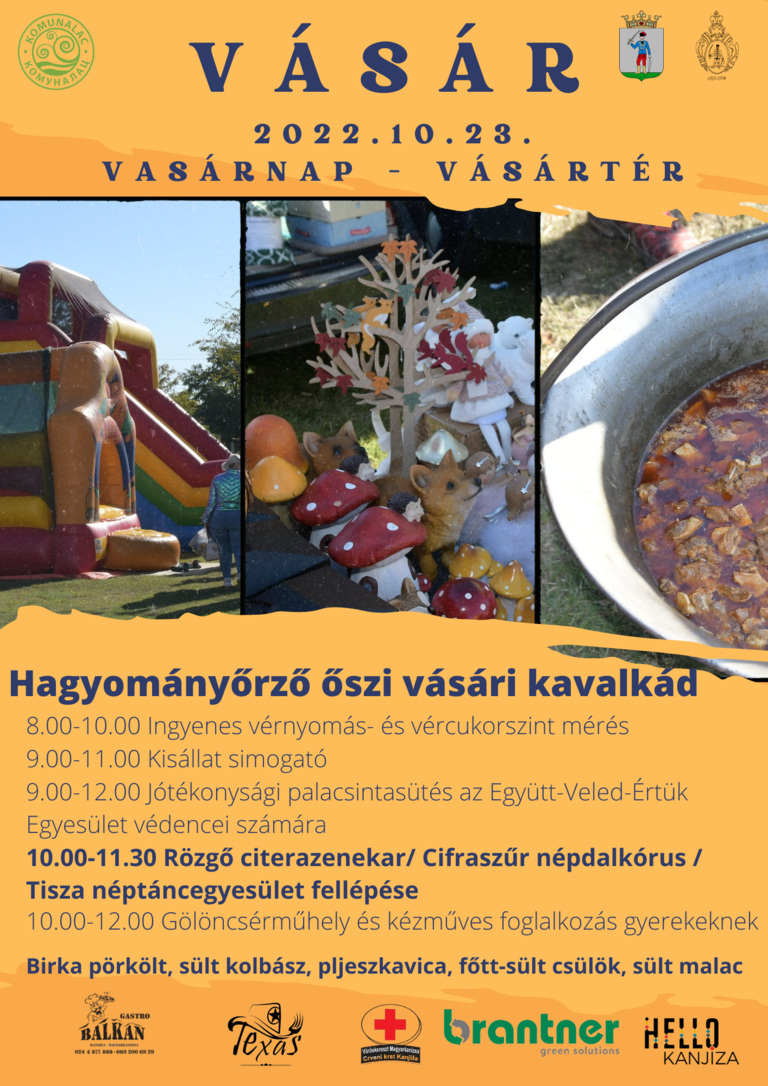 Hagyományőrző őszi kavalkáddal búcsúztatják a 2022-es vásári szezont október 23-án, vasárnap Magyarkanizsán. Nagyon sok kézműves, kereskedő jelezte már, hogy elhozza a vásárra a portékáját. Lesznek cukrászok, vattacukor árusok, gölöncsérek, papucsosok, szitások, fafaragók, kosárfonók, kötélfonók, lószerszámkészítők, de vásárolhatunk új és használt könyveket, ruházatot is.