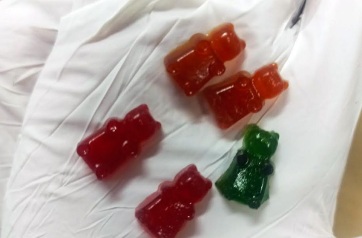 Az intézkedés során Z. M.-nél a rendőrök egy kisebb fémdobozt találtak, benne hat medve formájú, magas THC-tartalmú gumicukorral.