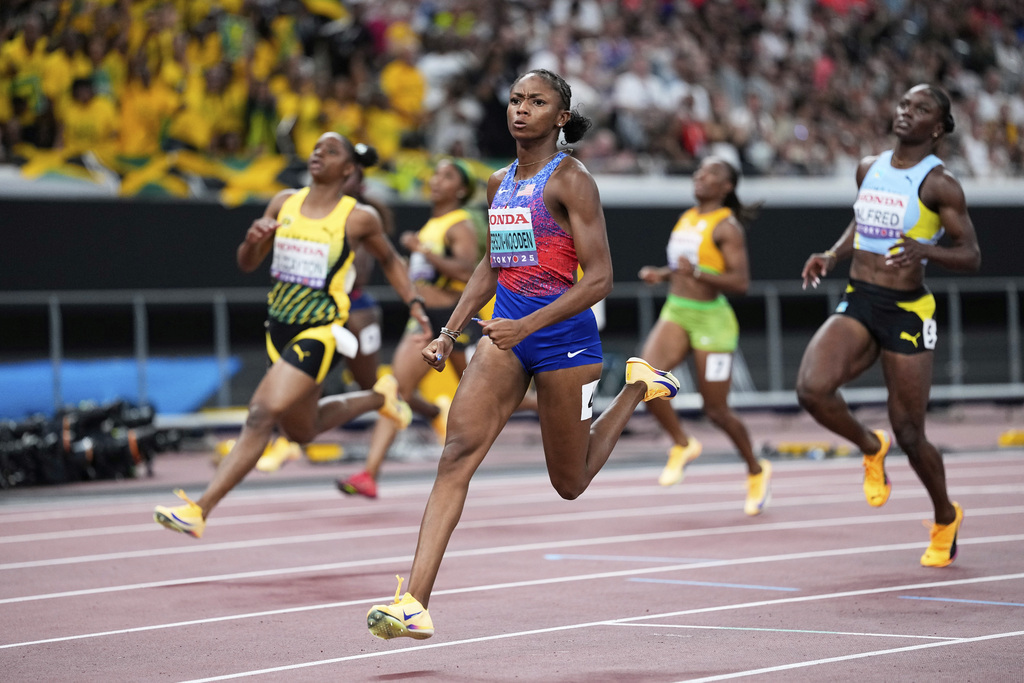 A második Clayton lett 10.76-tal, Alfred pedig 10.84-gyel végzett a harmadik helyen. A címvédő Sha´Carri Richardson gyenge formában versenyzett idén, ám klasszisát bizonyítja, hogy az előfutamban (11.03 mp), majd az elődöntőben (11.00 mp) és végül a fináléban is idei legjobbját érte el, s 10.94 mp-es idejével végül az ötödik lett.