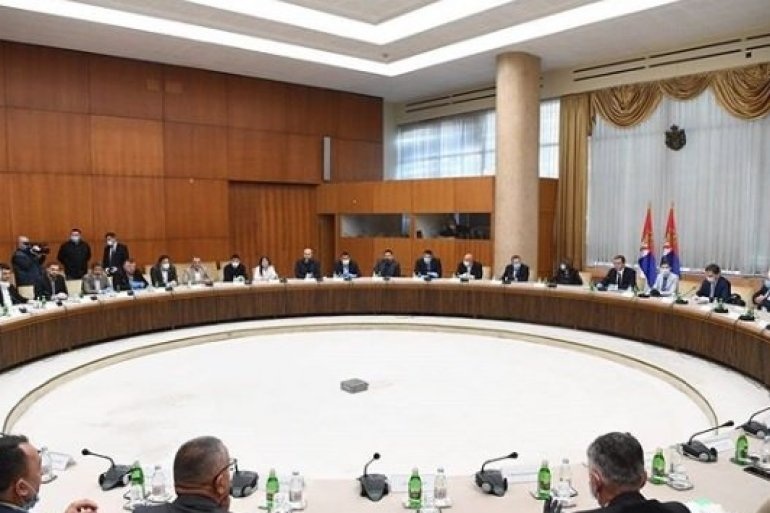 A Szerbia Palotában tartott egyeztetésen részt vett Maja Gojković házelnök, Ana Brnabić kormányfő és Nikola Selaković, a köztársasági elnök főtitkára is.