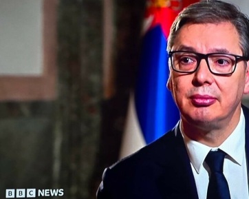 A BBC újságírója megkérdezte, hogy Szerbia miért nem vezetett be szankciókat Oroszországgal szemben, holott az EU, amelynek Szerbia tagja szeretne lenni, ezt megtette. Vučić erre azt válaszolta, hogy Szerbia maga hozza meg a döntéseit.