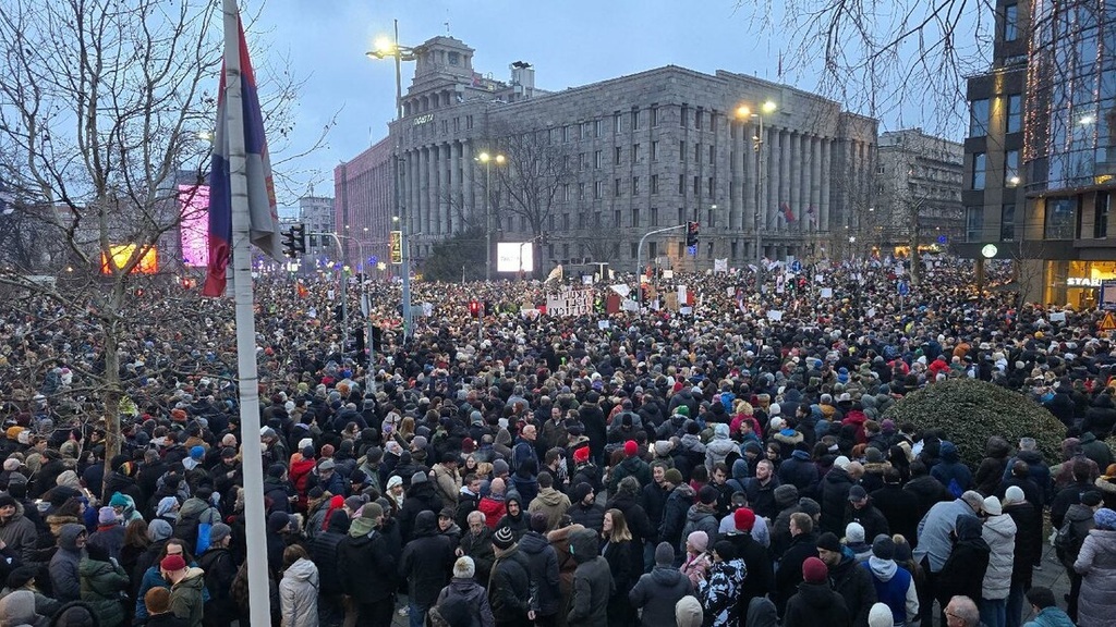 Az egyetemi karokat blokád alatt tartó hallgatók felhívására ma több ezren tüntettek Belgrádban az Alkotmánybíróság épülete előtt.