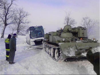 A szerbiai katonaság tankja segített abban, hogy az autópálya topolyai szakaszánál az utat elzáró kamiont félretolják, s a mögötte feltorlódó mintegy 11 kilométeres sor végre megindulhasson.Az autópálya eltakarításába a Vojput dolgozói mellett a szerbiai katonaság is bekapcsolódott, s egy tankkal tolják félre azokat a nyergesvontatókat, amelyek akadályozzák a forgalmat.