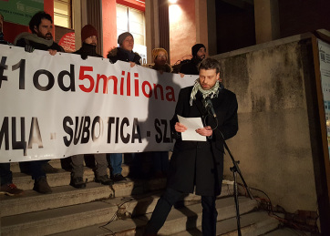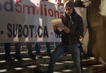 Másodikként Vuk Velebit belgrádi egyetemista, a politikatudományok mesterszakos hallgatója, a Talas portál szerzője szólt a szabadkaiakhoz. Arról beszélt, hogy egyre több városban mennek ki az emberek az utcára, s mennek ki mindaddig, amíg nem érik el, hogy változások történjenek az országban. A többi közt azt mondta: