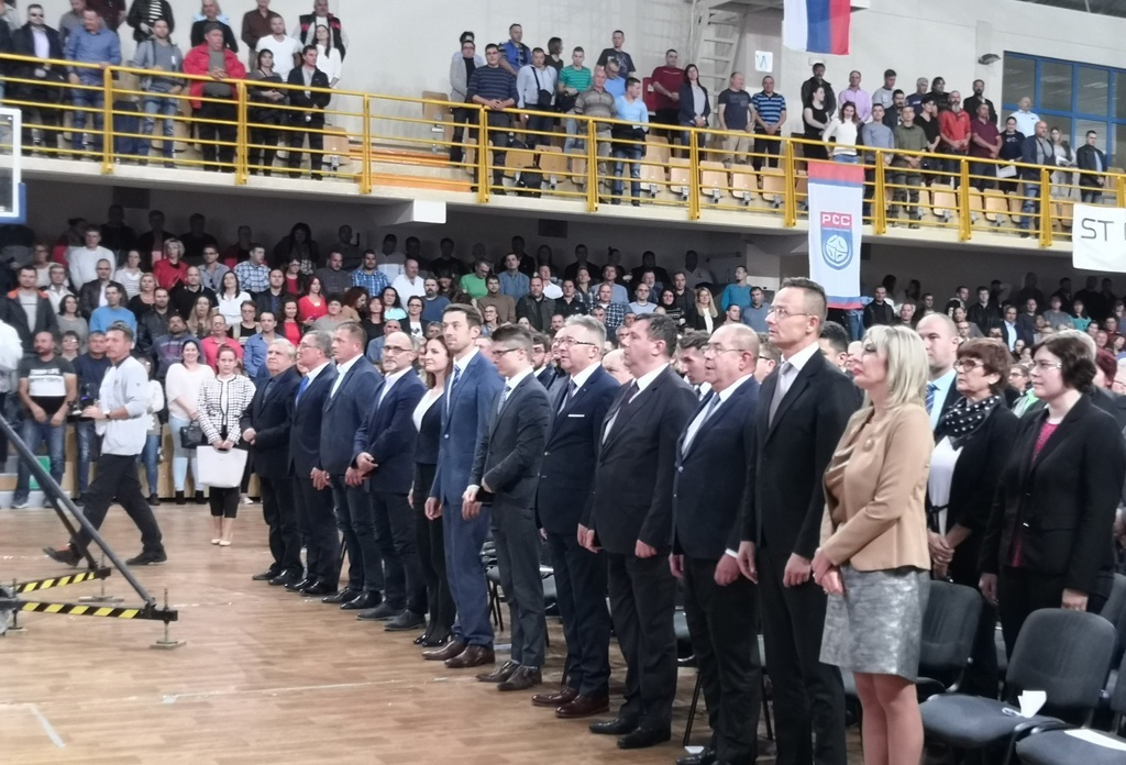 A harmadik nagy sportcsarnoki rendezvény ez már, emlékeztetett Pásztor István beszéde elején, majd köszönetet mondott mind a magyar kormánynak, mind a szerb vezetőségnek a kitűnő kapcsolatépítésért és együttműködésért. Az ötletből nemzetpolitikai eszköztár lett – hangoztatta beszédében Pásztor István -, az idő igazolta a programmal kapcsolatos elvárásokat. Az emberek békét, biztonságot és nyugalmat akarnak elsősorban. Elsődleges céljuk egyről a kettőre jussanak, élhető mindennapokat teremtsenek maguknak és mindehhez egzisztenciális kapaszkodóra is szükség van, az identitásbeli elkötelezettségen túl.