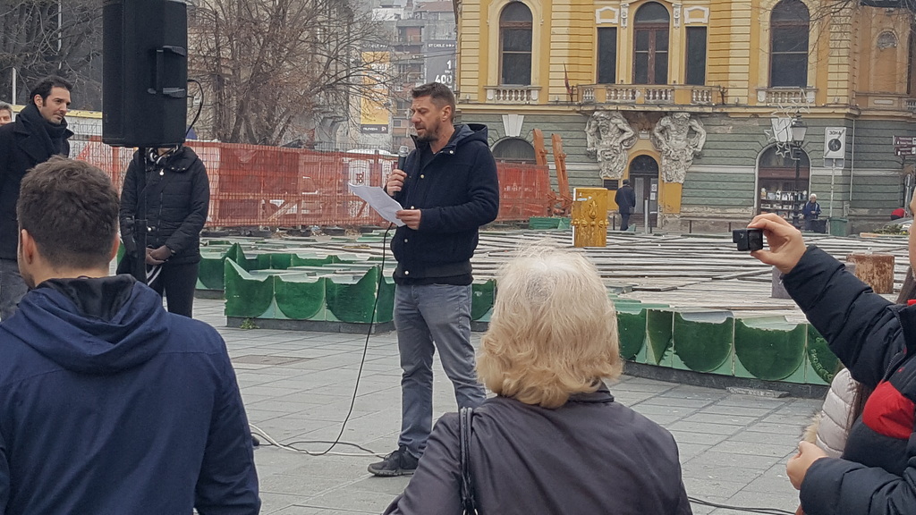 A szombati tiltakozás szónoka Tolnai Szabolcs filmrendező volt. Elmondta, hogy utoljára a 90-es évek tüntetésein vett részt. Egy dokumentumfilmet is forgattak, s az egyik vetítés után a közönség spontán kiment a teremből és elállta a forgalmat az úton. Az volt akkor az első tüntetés Szabadkán. Azóta nem volt tiltakozáson, mert már akkor látta, hogy egyesekből hogyan lett hivatásos tüntető, hogyan készültek arra, hogy elfoglalják a leváltott rezsim tagjainak foteljeit, hogyan váltak politikusokká, majd Szerbia leggazdagabb embereivé. Akkor is szótlan maradt, amikor a régi csőcselék visszatért a hatalomba, azok az emberek, akik sohasem tudják kezükről lemosni a vért, fogalmazott Tolnai Szabolcs. Szerinte nem azok a hibásak, akiknek tálcán vissza lett adva a hatalom, hanem azok, akiknek nagyzási mániája, kleptomániája miatt mindez a visszerendeződés bekövetkezett. Az ilyen emberek miatt a nép elvesztette a reményét, hogy változások lehetnek, s inkább elköltöznek. 2020 elején Németország megnyitja kapuit a szerbiai munkavállalók előtt, s Tolnai attól tart, hogy akkor tényleg ki fog ürülni ez az ország. Csak az idősek és a betegek maradnak itt, akik sehol sem kellenek. A mostani urak megehetik majd az összelopott, véres pénzüket, mert nem lesz, aki dolgozzon nekik, nem lesz, aki vásároljon tőlük, nem lesz, aki aludjon a hoteljeikben. A védett és lerombolt épületek helyett klimatizált kriptákat építenek, amelyeknek nincsen lelkük, olyan világot teremtenek, amelyben nincs levegő. A filmrendező szerint az sem véletlen, hogy a reklámtáblák a szabadkai sétálóutcákra kerültek, biztos benne, hogy ki fog azokról mosolyogni pár hónapon belül.