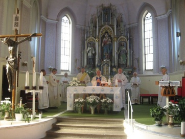 Minden tekintetben szerényebben ünnepelnek a hétvégén Muzslyán: a templombúcsú alkalmával megtartották szombaton a búcsúi szentmisét, amelyet az utóbbi években szombatonként tartanak a bánáti papokkal együtt ünnepelve. Ezúttal a szentmisét a Szűz Mária Szent Neve templomban ft. Palatinus István szabadkai plébános celebrálta, a helyi plébánoson, Kalapis Sztoján atyán, Jelen Janez atyán és Sándor Zoltán állandó diakónuson kívül közreműködött még Elias Ohoiledwarin nezsényi és szentmihályi plébániai kormányzó, Szemerédi Pál székelykevei plébános, Tapolcsányi Emánuel tordai plébániai kormányzó, mons. Tietze Jenő nyugalmazott atya, valamint Erős Mihály ürményházi plébános.