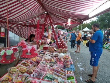 A gyerekek nagy örömére van kirakodóvásár is, az elárusítók, meg ugyanakkor a különféle szórakozási lehetőségek is a piactéren kaptak helyet. A körhinták, a kisvonatok, az ugrálók, a kisautók is hívogatják a fiatalokat, ám a sétálók, a nézelődők ezúttal érezhetően kevesebben vannak, ami nem is csoda, hiszen elmaradtak a külföldi helybeliek, akik régebben rendszerint a muzslyai búcsúra időzítették a hazalátogatásukat, de a járvány miatt a külföldiek csak kevesen jöttek.