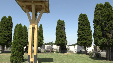 - Találtunk egy öntödét, amely elkészítette a több mint negyven kilós harangot, amelynek mint hallottuk is, méltó hangja van és nagyon szépen szól. Ahogy elkészült a harang, a temetőben található árnyékoló formáját nem megtörve próbáltuk a harangtartót is megépíteni. Úgy gondolom, hogy ez sikerült is és tökéletesen illik a környezethez.
