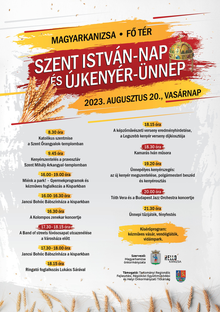 Az életet adó új kenyeret és az államalapító királyt hagyományosan egy napon ünneplik Magyarkanizsán. Mivel augusztus 20-a idén vasárnapra esik, nem volt kérdéses, hogy az ünnepnap dátumán szervezik meg az alkalmi programokat. Ezeket sajtótájékoztatóján Vranić Váradi Lívia, a szervezőbizottság tagja ismertette.