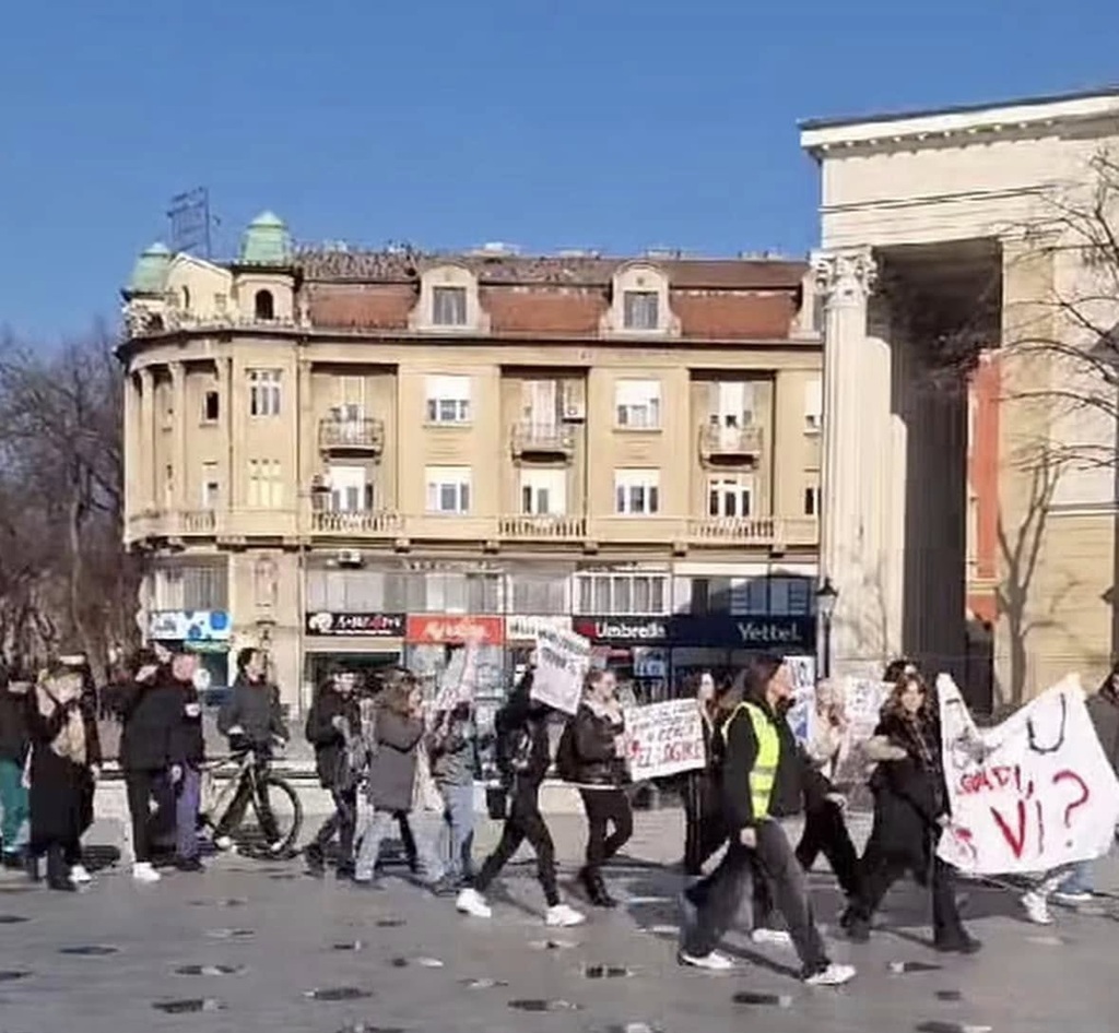 A Svetozar Marković Gimnázium tanulói, akik szintén blokád alatt tartják iskolájukat, ma 10:45-kor gyalog indultak az Egészségügyi Középiskola elé, ahol 11:52-től 15 perc csenddel emlékeztek az áldozatokra, majd 15 perc zajjal fejezték ki támogatásukat diáktársaik iránt. A demonstráció idején a rendőrség biztosította a forgalmat Szabadkán, az esemény békésen, incidens nélkül zajlott le.