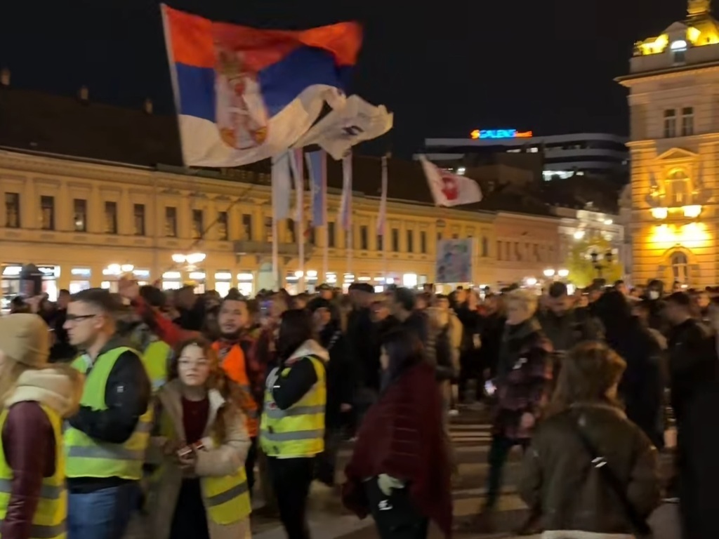 A tiltakozók – köztük egyetemisták, civilek és motorosok – az egyetemi városból indultak a városközpont felé, a menet élén két traktorral. A tömeg a már jól ismert rigmust skandálta: Ko ne skače, taj je ćaci (Aki nem ugrál, az ćaci) – ugyanazt, amit az egyetemisták is énekeltek előző éjszaka a megtámadásuk előtt.