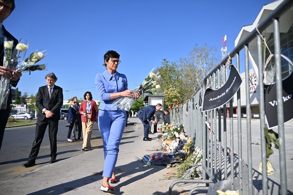 Marta Kos tisztelgett a vasútállomáson történt tragédia áldozatai előtt Újvidéken