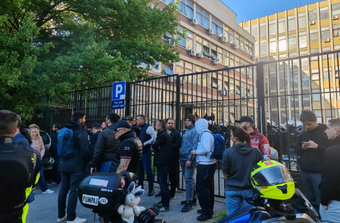 A rendőrség tagjai a hátsó bejáratnál elmozdították a kordonokat, és megkísérelték lehetővé tenni a dolgozók belépését az épületbe, de a tiltakozók ezt nem engedték, és lökdösődés alakult ki a tüntetők és a rendőrök között, írja a Tanjug.