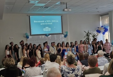 A végzősök egymástól személyre szabott, gyakran humoros üzenetekkel búcsúztak, amelyek egyszerre csaltak mosolyt és könnyeket a jelenlévők arcára. Ezt követően dr. Pintér Krekić Valéria, a kar dékánja beszédében köszönetet mondott a hallgatóknak az elmúlt évekért, valamint sok sikert és kitartást kívánt nekik a további életútjukhoz. A hallgatói közösség nevében Krizsán Szabrina, a Hallgatói Önkormányzat (HÖK) elnöke búcsúzott a végzősöktől, kiemelve az együtt töltött évek emlékeit és a közösség formáló erejét.