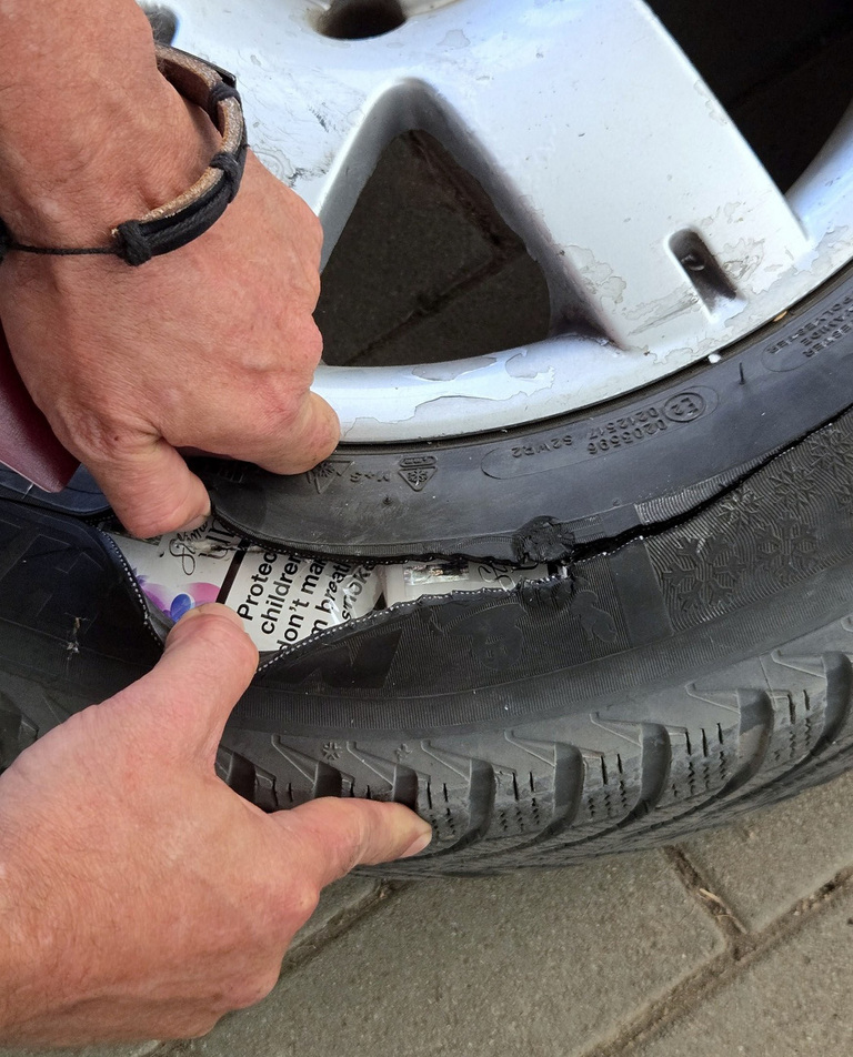 A vámosok is elcsodálkoztak, amikor június 19-én, a királyhalmi határátkelőn egy furcsán "bicegő" autót átvizsgálva kiderült, a hátsó kerekek gumiabroncsai tekintélyes mennyiségű cigarettával vannak kitömve.