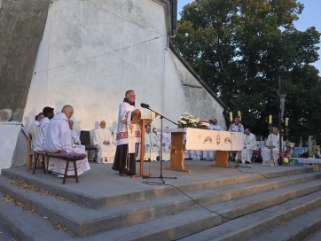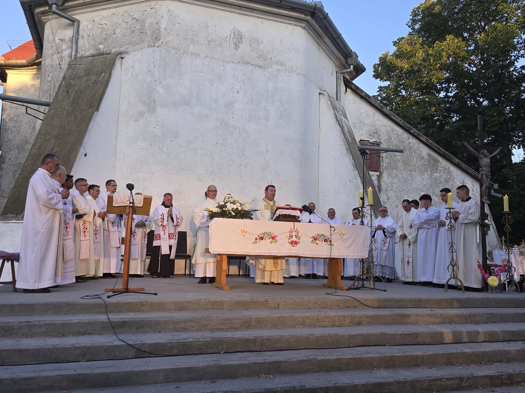 A szabadtéri oltárnál megtartott ünnepi szentmisét a Nagybecskereki Egyházmegye papjai közreműködésével msgr. Mirko Štefković megyéspüspök celebrálta.