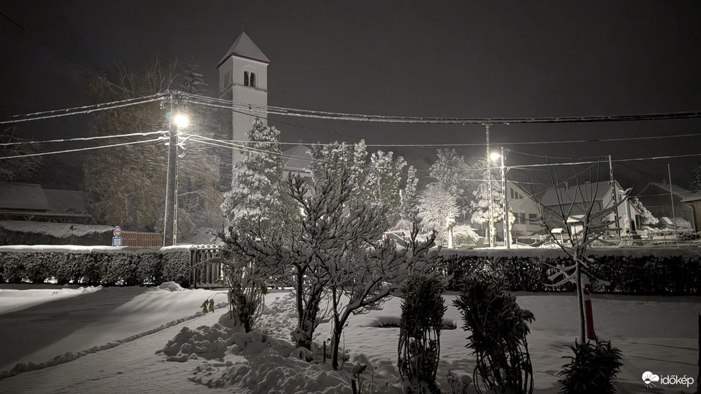 Helyenként 15 centimétert meghaladó hótakaró alakult ki a Bakonyban, ám a téli varázslatnak egy újabb meleghullám hamarosan véget vet. (Időkép/Funnelcloud26)